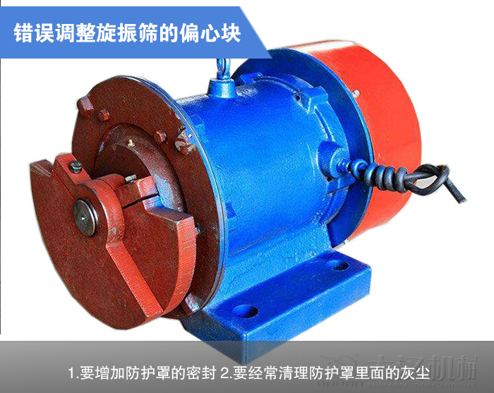 調整圓振動篩偏心塊時,誤把兩端偏心塊的方向調反,使振動電機產生一個空間扭矩,使振動電機在非正常狀態下工作,進而引起燒毀。因此調整偏心塊時,一定要注意其對稱性,即兩端偏心塊要兩兩對應,或者說是兩端偏心塊的重心連接線要與轉軸平行,不能成異面狀態。由于振動電機的工作環境大都非常惡劣、粉塵大,如果防護罩密封不嚴,很容易進灰塵,引起偏心塊的摩擦運轉,從而燒毀電機。所以在工作環境惡劣的地方,